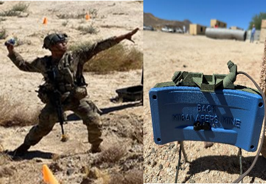 The M67 Grenade Training System replicates the size, pull ring, pull pin, safety clip, spoon, and striker mechanism and seamlessly interfaces with the tactical carrying pouch. The M18 Claymore is comprised of an M7 bandoleer pouch, M40 tester, firing wire with spool, M57 firing device, Claymore mine with foldable legs. The Grenade and Claymore Training system interfaces with a Universal Receiver Unit (URU) that is securely fastened to the Soldier's personal equipment. The URU plays a crucial role in processing signals emitted by the sim grenade and claymore during simulated detonations.